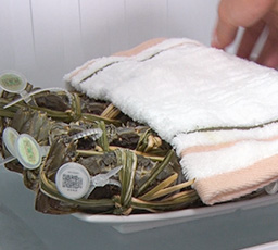 2.用蟹草將蟹鉗、蟹腳扎牢.
